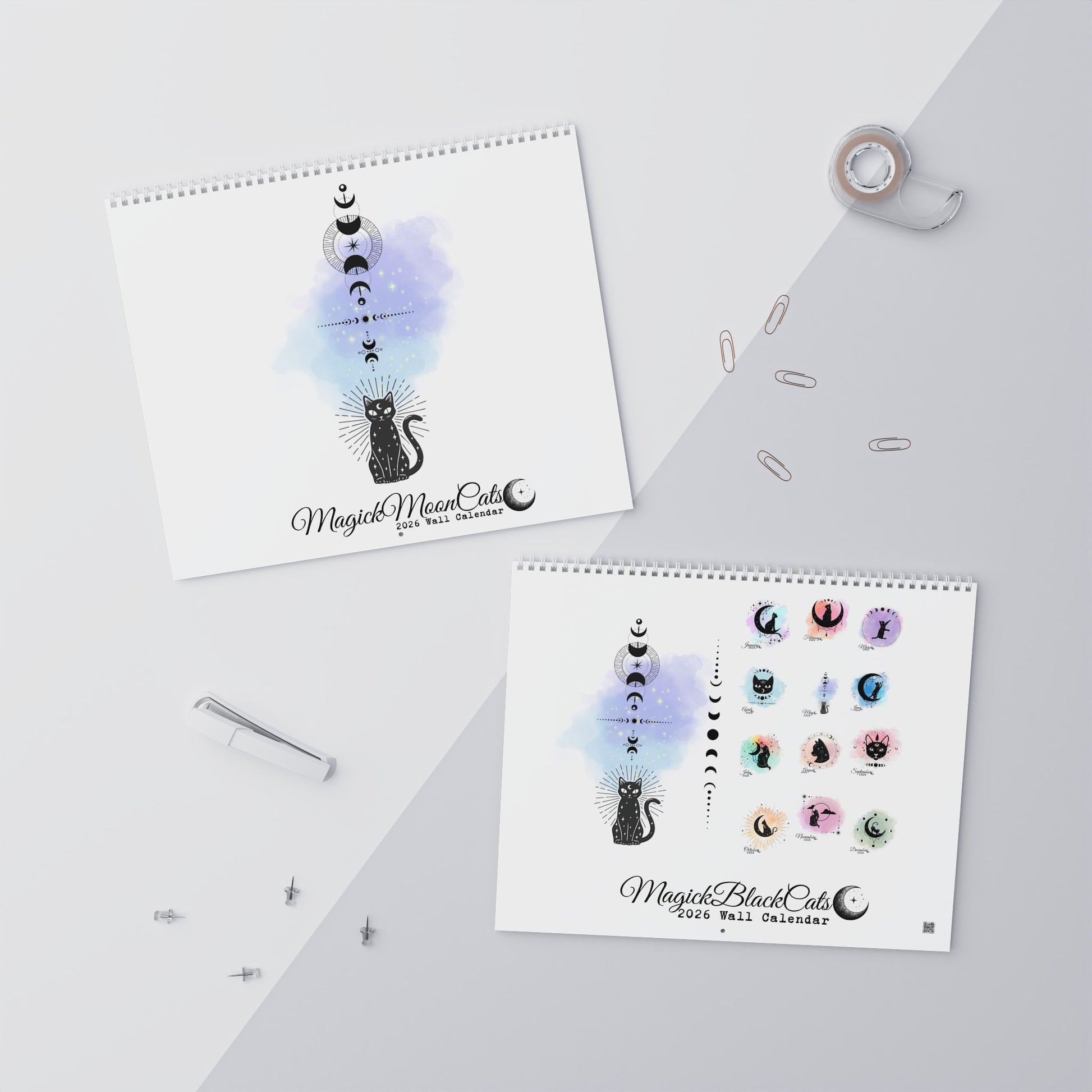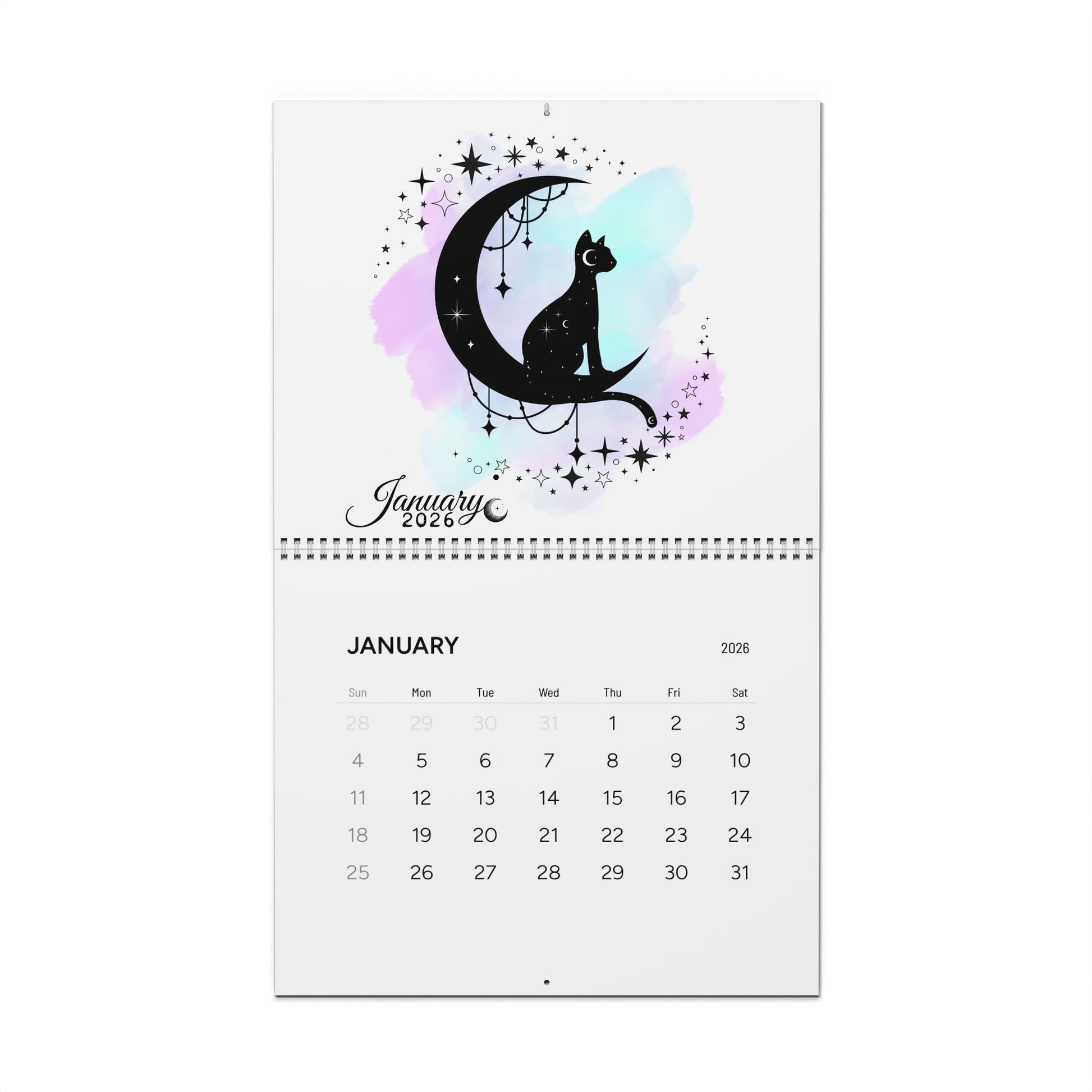 2026 Moon Cat Wall Calendar — Cute Celestial Monthly Planner
